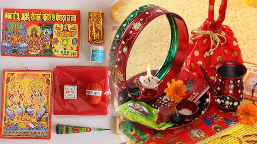 करवाचौथ व्रत में इसकी कथा सुनना बहुत महत्वपूर्ण माना जाता है। इस दौरान एक चौकी पर जल से भरा लोटा, करवे में गेहूं और उसके ढक्कन में चीनी तथा रुपए आदि रख जाते हैं।