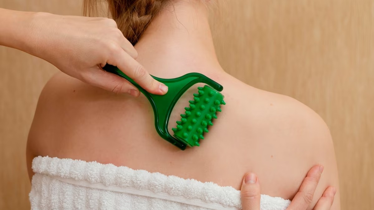ड्राई ब्रशिंग नहाने से पहले अपने शरीर को गीला किए बिना ब्रश करने की प्रक्रिया है। आपको बस एक हैंड ब्रश लेना है और इससे अपनी पीठ को रगड़ना है। यह आपकी पीठ को साफ करेगा और फिर आप नहा सकते है और बाद में अपनी पीठ को अच्छी तरह मॉइस्चराइज कर सकते हैं।