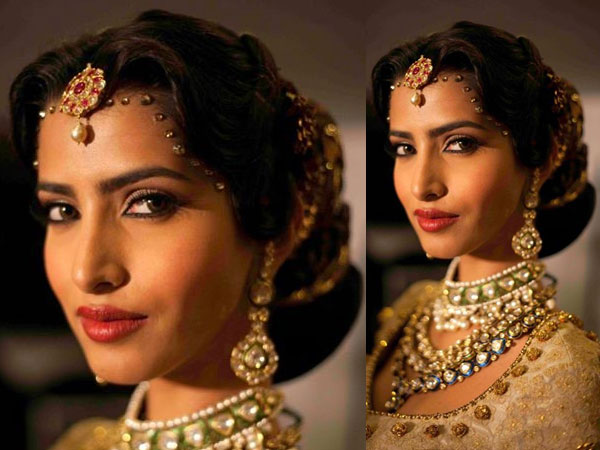 साइड हेयर पिन, पतला सा मांग टीका और लंबे लटकते हुए इयर रिंग आपके ब्राइडल लुक को पूरा करेगें।