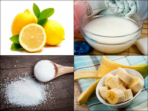 आवश्यक सामग्री: 1 पका हुआ केला, 3 टेबलस्पून दूध, 2 टेबलस्पून नीबू का रस, 2 टेबलस्पून शक्कर