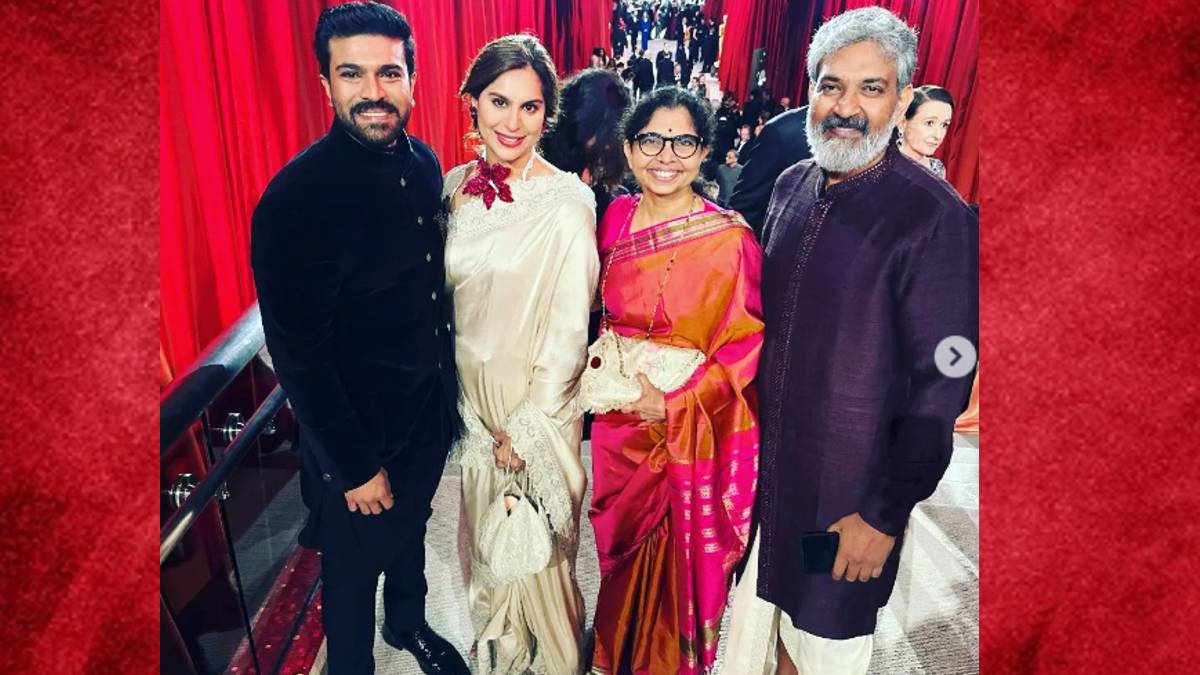 आज दिन हम भारतवासियों के लिए बहुत खास है। खुशखबरी मिली है हमें लॉस एंजलिस से। वाकई गर्व की बात है। 95 वें ऑस्कर ऑवर्ड में सुपर-डुपर हिट फिल्म आरआरआर के हिट गाने 'नाटू नाटू' को ऑसकर ऑवर्ड मिला है। फिल्म का प्रतिनिधत्व फिल्म के अभिनेता राम चरण ने किया। अभिनेता राम चरण अपनी पत्नी उपासना कामिनेनी के साथ पहुंचे। बता दें कि लॉस एंजिल्स के डॉल्बी थिएटर में ऑस्कर 2023 समारोह में त्त्त् टीम स्टाइल में पहुंची। राम चरण, उनकी पत्नी उपासना कामिनेनी, जूनियर एनटीआर, एसएस राजामौली, राहुल सिप्लिगुंज, काला भैरव और एमएम कीरावनी ने 95वें अकादमी पुरस्कारों में भाग लिया। यह भारत और आरआरआर टीम के लिए एक विशेष रात थी क्योंकि फिल्म ने नाटू नाटू के लिए सर्वश्रेष्ठ मूल गीत का पुरस्कार जीता। उपासना की साड़ी का कलर था ऑफ व्हाइट। साड़ी शिमरी इफेक्ट दे रही थी।