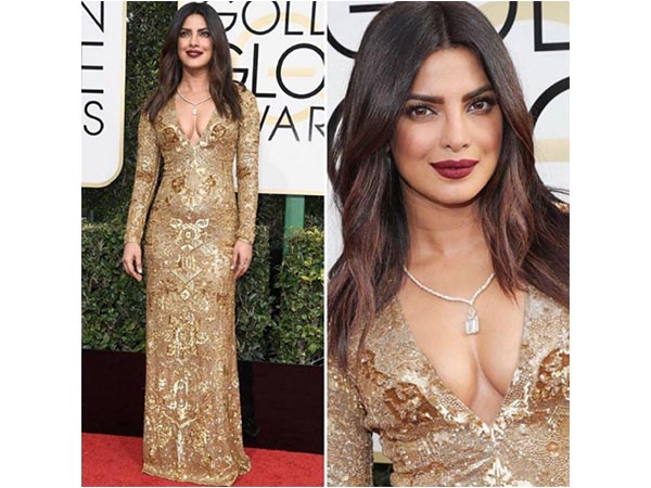 प्रियंका चौपड़ा अपनी हॉलीवुड फिल्म बेवॉच को प्रस्तुत करने के लिए 74 वें गोल्डन ग्लोब अवार्ड्स के लिए लॉस एंजिल्स में उपस्थित थी। प्रियंका ने एक चमकता हुआ राल्फ लॉरेन गाउन पहना था और वे बहुत सुंदर दिख रही थी।