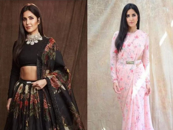 इस लुक में कैटरीना बेहद ही ब्यूटीफुल नजर आ रही थीं। इस लुक में उन्होंने लाइट पिंक कलर की फ्लोरल साड़ी पहनी थीं, जो सब्यसाची के लेबल से आई थी। इस खूबसूरत साड़ी को कैटरीना ने फुल-स्लीव्स ब्लाउज़ के साथ स्टाइल किया। साथ ही अपने लुक को और भी स्टाइलिश बनाने के लिए उन्होंने एक मैचिंग बेल्ट को भी टीमअप किया। लाइट मेकअप और मिडिल पार्टिंग स्लीक ओपन हेयर से उन्होंने अपने लुक को कंप्लीट किया था।