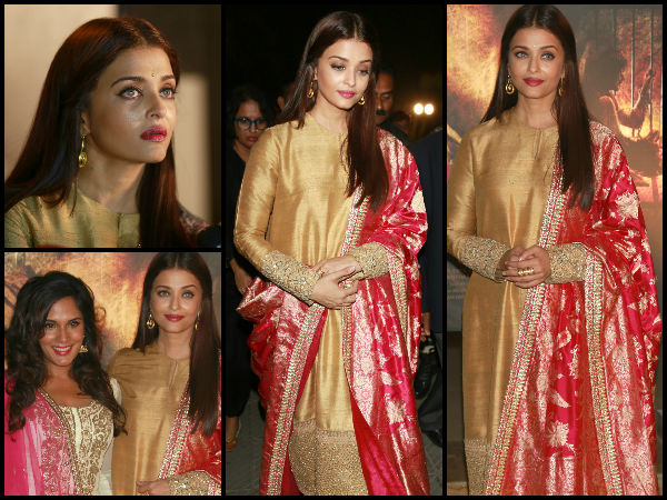 सरबजीत के पोस्टर लांच पर ऐश्वर्या पहुंची गोल्डन सिल्क सूट में