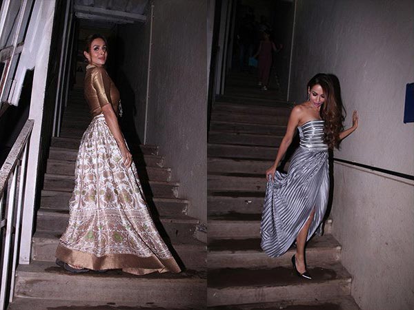 वहीं दूसरे लुक में मलाइका गोल्डन शाइनी ब्लाउज के साथ ही साथ ही व्हाइट और गोल्डन मिक्स स्कर्ट में नजर आई।