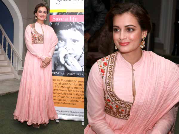 Gorgeous Dia Mirza In A Beautiful Pink Anarkali Suit in hindi