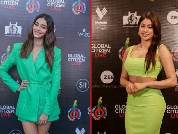 अनन्या पांडे और जाह्नवी कपूर बी टाउन की फैशन डीवा है। अनन्या पांडे और जाह्नवी कपूर बॉलीवुड की यंग और स्टाइलिश एक्ट्रेस हैं। अनन्या पांडे और जाह्नवी कपूर के फैंस उनके स्टनिंग और ग्लैमरस लुक को काफी पसंद करते हैं। हाल ही में अनन्या पांडे और जाह्नवी कपूर ग्लोबल सिटीजन लाइव 2021 के अवॉर्ड नाइट में नजर आईं है। ग्लोबल सिटीजन लाइव 2021 में अनन्या पांडे और जाह्नवी कपूर ग्रीन कलर के आउटफिट पहने नजर आई हैं। ग्रीन कलर आउटफिट में एक्ट्रेस अपना फिगर फ्लॉन्ट करते हुए नजर आईं है। जाह्नवी कपूर नियॉन ग्रीन बॉडीकॉन ड्रेस और अनन्या पांडे ग्रीन कलर ब्लेजर ड्रेस में नजर आईं है। दोनों अपने आउटफिट में कमाल के लग रहे है। चलिए देखते हैं अनन्या पांडे और जाह्नवी कपूर का ग्लैमरस अंदाज।