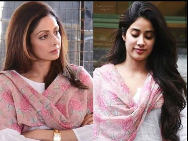 इसमें कोई दोराय नहीं है कि जाह्नवी कपूर में उनकी मां श्रीदेवी की झलक देखने को मिलती हैं। हाल ही में एक फोटो सोशल मीडिया में खूब वायरल हो रही थी। जिसमें जाह्नवी ने अपनी श्रीदेवी का फ्लोरल दुपट्टा ओढ़ रखा था। इस फोटो में जाह्नवी कपूर बिल्कुल अपनी मां श्रीदेवी की परछाई नजर आ रही थी। ये पहली बार नहीं है कि जब जाह्नवी में उनकी मां श्रीदेवी का अक्स नजर आया है इससे पहले कई मौको पर जाह्नवी कपूर अपनी मां श्रीदेवी की तरह नजर आ चुकी हैं।