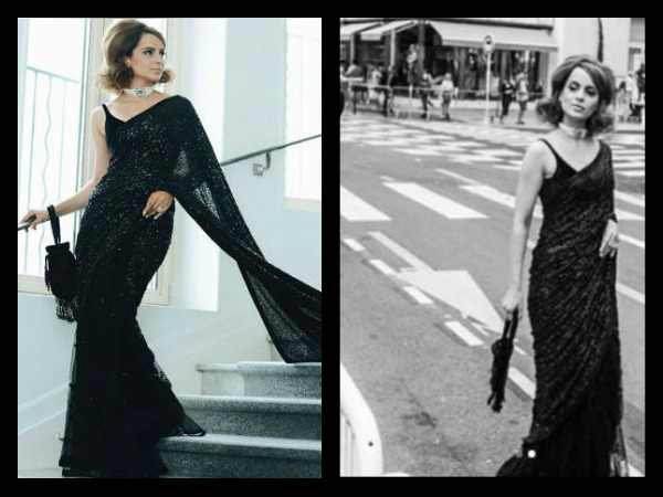 बॉलीवुड की क्वीन कंगना रनौत ने कान्स फिल्म फेस्टिवल में शानदार डेब्यू करते हुए अपने विंटेज लुक से सभी फैंस का दिल जीत लिया। कंगना ने बाकी एक्ट्रेस की तरह कांस फेस्टिवल में गाउन को पीछे छोड़ते हुए फैशन डिजाइनर सब्यासाची द्वारा तैयार की गई ब्लैक साड़ी में रेड कार्पेट पर नजर आई। उनका ये लुक देखकर बीते जमाने की एक्ट्रेसेस मुमताज, आशा पारेख और साधना की याद आ गई।