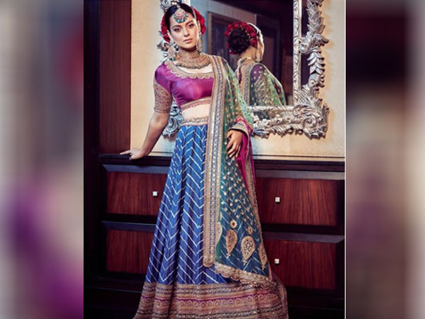एक्ट्रेस ने अपनी भाई की शादी के लिए गुजराती बांधनी लहंगा है। इस लहंगे की कीमत करीब 18 लाख रुपए है। इस लहंगे को तैयार करने में 14 महीने का समय लगा है। इस लहंगे को अनुराधा वकील ने डिजाइन किया है। लहंगे पर हैंड वर्क किया हुआ है। ब्लू और पर्पल कलर के लहंगे में कंगना रनौत बेहद खूबसूरत लग रही हैं। गुजराती बांधनी लहंगा में गोल्डन वर्क कैरी किया हुआ हैं।