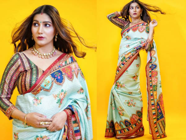 सपना चौधरी ने साड़ी के साथ परफेक्ट मेकअप किया है। सपना ने फाउंडेशन और कंसीलर का परफेक्ट बेस बनाया हुआ है। उनके आई मेकअप की बात करें तो एक्ट्रेस ने पर्पल आई मेकअप किया है। पर्पल आई मेकअप और रेड लिपस्टिक में एक्ट्रेस बेहद खूबसूरत लग रही हैं। सपना चौधरी ने मल्टीकलर साड़ी के साथ ग्रीन कलर की बिंदी लगाई हुई है। मांग में लाल सिंदूर उनकी खूबसूरती में चार चांद लगा रहा है। खुले बालों में सपना चौधरी कहर ढा रही है।