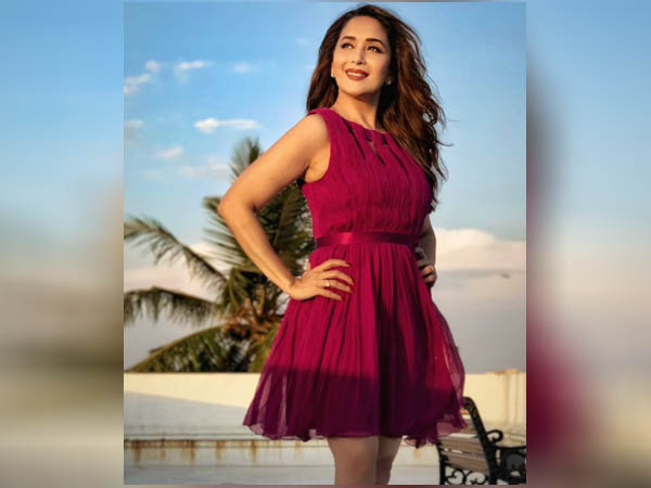 मैरुन ड्रेस में माधुरी दीक्षित