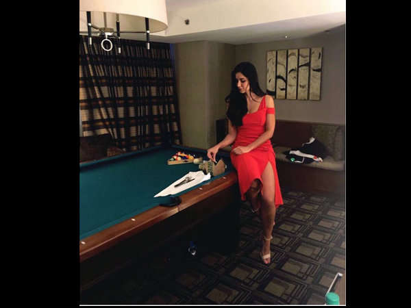 हाल ही में कैट ने अपने होटल रूम में क्लिक कि हुई पिक शेयर की है। जिसमें वह पूल टेबिल पर बैठी रेड कोल्ड शॉल्डर वाली रेड ड्रेस में बहुत ही ब्युटीफूल और सेंशियस नजर आ रही है।