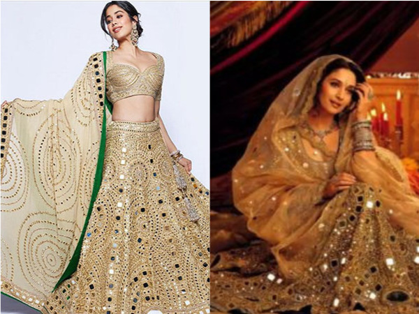 पिछले दिनों मुकेश अंबानी के बेटे आकाश अंबानी और श्लोका मेहता की शादी में बॉलिवुड के तमाम सितारे शामिल हुए, जिसमें जान्हवी भी शामिल थीं। जाह्नवी इस भव्य शादी में ऑफ वाइट और ग्रीन मिरर वर्क वाले लहंगे में पहुंची थीं। जान्हवी इस ड्रेस में काफी ग्लैमरस नजर आ रही थी वैसे उनका ये लुक उनकी मां श्री देवी का नहीं बल्कि देवदास की चंद्रमुखी यानी माधुरी दीक्षित का याद दिला रहा था। दरअसल जाह्नवी ने डिजाइनर अबू जानी और संदीप खोंसला का डिजाइन किया हुआ ऑफ क्रीम कलर के मिरर वर्क वाला लहंगा पहना हुआ था जो देवदास में चंद्रमुखी का रोल निभा रही अभिनेत्री माधुरी दीक्षित के एक लुक से इंस्पायर्ड था।