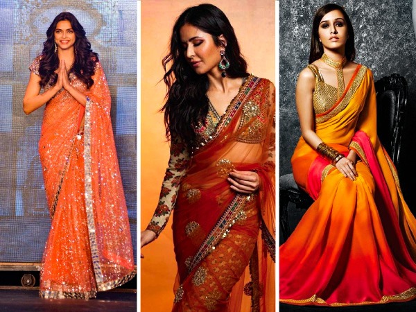 कैटरीना कैफ की तरह आप ऑऱेज साड़ी जिसमें फुल स्लीव ब्लाउज आपको लाइट और एलिगेंट सीक्वेंस प्रदान करेगा। इसके साथ एक्सेसरीज़ पर भी ध्यान देना होगा। ऑऱेज कलर के साथ जानें पर मेकअप भी लाइट ही रखें, क्योंकि नारंगी कलर की सबसे बड़ी खासियत ये है कि उसका प्रभाव आपके चेहरे पर आता है, कम मेकअप में भी फेस फ्लॉलेस लगता है।