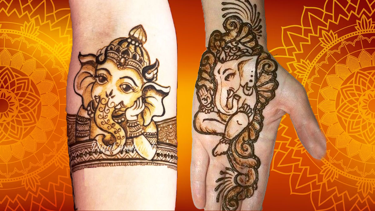 4. दोनों हाथों में गणेश जी की डिजाइन से दोनों हाथ भर सकते हैं।