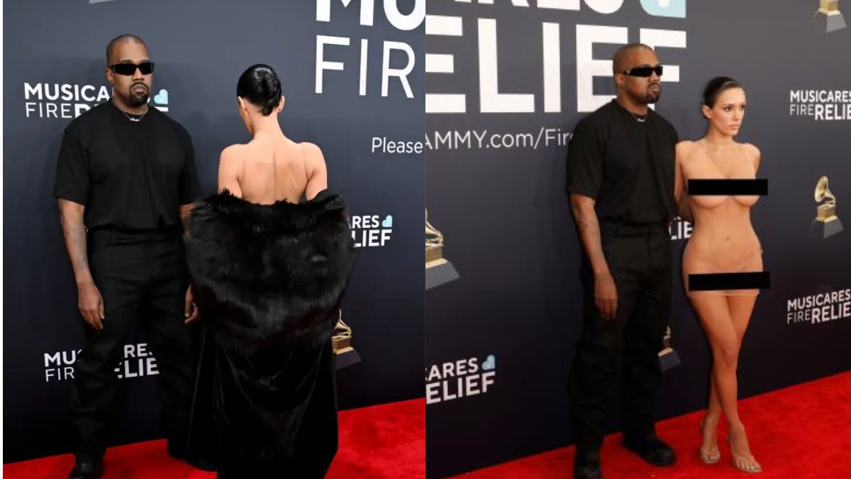 बियांका सेंसोरी ने अपनी ट्रांसपेरेंट बॉडीकॉन ड्रेस को पारदर्शी हील्स के साथ स्टाइल किया, जबकि कान्ये वेस्ट ने काली टी-शर्ट, काली पैंट, काले जूते और सिग्नेचर काले चश्मे में क्लासिक लुक अपनाया। रिपोर्ट्स के मुताबिक, यह कान्ये की 10 साल बाद ग्रैमी अवॉर्ड्स में एंट्री थी। खबरें हैं कि यह जोड़ी बिना इनविटेशन के पहुंची थी, जिसके बाद सुरक्षा कर्मियों ने उन्हें इवेंट से बाहर निकाल दिया।