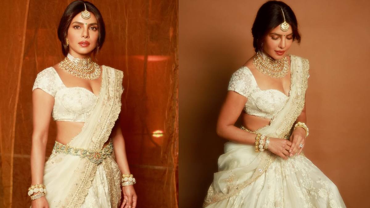 देसी गर्ल बनी ग्लोबल स्टार! व्हाइट लहंगा, बिंदिया और झुमकों में प्रियंका चोपड़ा का लुक हुआ Viral