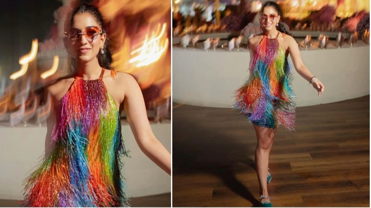 प्री-वेडिंग फंक्शन के दूसरे दिन ब्राइड टू बी राधिका मर्चेंट ने अपने लुक से काफी इम्प्रेस किया था। उन्होंने इस मौके पर मल्टी कलर ड्रेस पहनी थी। ड्रेस की डिटेलिंग की बात करें तो इस हॉल्टर नेक जॉर्जट मिनी फ्रिंज्ड ड्रेस में राधिका की काफी कूल और स्टाइलिश दिख रही थी। अपने इस लुक को राधिका ने पोनी टेल और ईयररिंग्स के साथ कंपलीट किया था, जिसमें वे काफी खूबसूरत दिख रही थीं। आइए जानते हैं राधिका के इस पूरे लुक के बारे में-