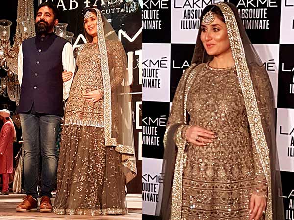 करीना कपूर ने डिजायनर सब्यसाची के लिये पहले भी कई बार रैंप पर वॉक किया है, मगर इस बार बात कुछ खास थी। कहने का मतलब है कि इस बार करीना ने अपने बेबी बंप के साथ लेक्मे फैशन वीक के रैंप पर वॉक किया।