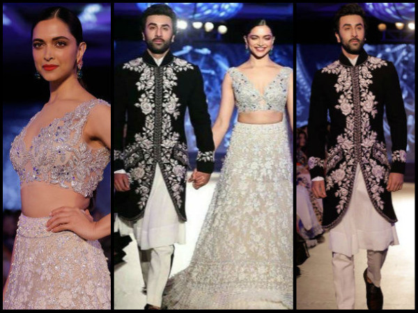 फेमस फैशन डिजाइनर मनीष मल्होत्रा के लिए दीपिका-रणबीर रैंप पर उतरें। इस दौरान दीपिका ने व्हाइट कलर का लहंगा वियर किया था, जिसपर हैवी चिकनकारी एम्बॉइडरी की हुई थी। लहंगे के साथ उन्होंने स्टेटमेंट ईयररिंग्स पहने थे। सिंपल हेयरस्टाइल और मिनिमम मेकअप दीपिका के लुक को पूरा करते हुए पोनीटेल बनाया था।