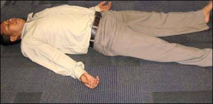 पीठ के बल लेट जाएँ और दोनों पैरों में डेढ़ फुट का अंतर रखें. दोनों हाथों को शरीर से 15 सेमी की दूरी पर रखें. हथेली का रुख़ ऊपर की ओर होगा. सिर को सहारा देने के लिए तौलिया या किसी कपड़े को दोहरा कर सिर के नीचे रख सकते हैं. इस दौरान यह ध्यान रखें कि सिर सीधा रहे.