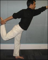 शेष तीनों उंगलियों को सीधा रखें. इस अवस्था में कुछ सेकेंड ठहरें. इसके बाद प्रारंभिक अवस्था में वापस आएँ. इसी तरह दूसरे पैर से भी नटराज आसन का अभ्यास करें.