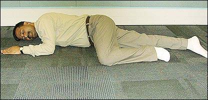 पेट के बल लेट जाएँ. दाएँ पैर के घुटने को दायीँ तरफ मोड़ें ताकि घुटना छाती के करीब आ जाए. दायीं बाजू को भी कोहनी से मोड़ें और दायीं हथेली को चेहरे के करीब रखें. गर्दन को भी दायीं ओर मोड़ें और ज़मीन पर टिकाकर आँखें बंद कर लें.