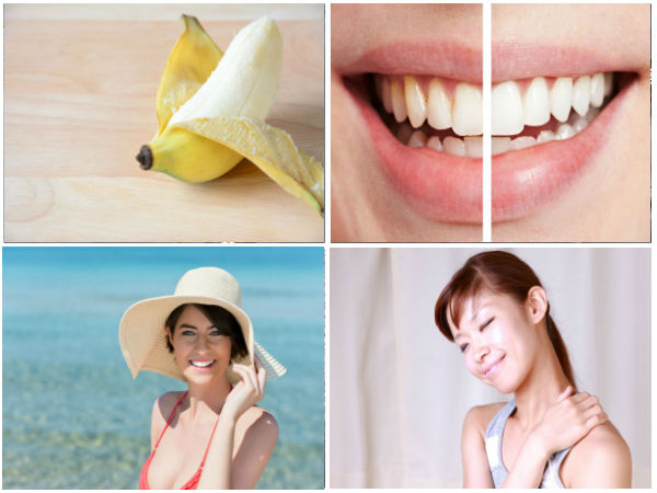 जिस जगह पर भी बॉडी में दर्द होता हों, वहां केले के छिलके लगाने से आराम मिलती है। इसे लगाकर 30 मिनट तक छोड़ दें, इससे भंयकर दर्द में भी राहत मिलती है। सब्जी ऑयल में इसे घिसकर लगाने से भी आराम मिलता है।