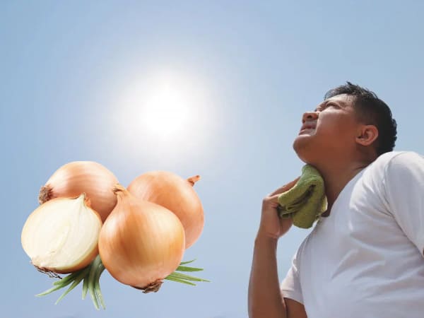 गर्मी के मौसम में लू या सन स्ट्रोक से बचने के लिये प्याज सबसे अच्छा और खास तरीका है इसका उपयोग आप सलाद में लेकर रोज कर सकती है। ये आपकी कई तरह की बीमारियों को दूर करने का सबसे खास तरीका माना जाता है। ये शरीर में शीतलता प्रदान करने के साथ अन्य बीमारियों को भी दूर करने का काम करता है। क्योंकि प्याज में क्वेरसेटीन नामक रासायनिक तत्व पाया जाता है जो एन्टी-हिस्टामीन जैसा काम करता है। इसके अलावा प्याज में हीट रैशेज पाये जाते है जो गर्मियों के समय में शरूर पर प्रतिकूल असर डाल हमारे शरीर को लू से बचाने में अहम भूमिका निभाते है।