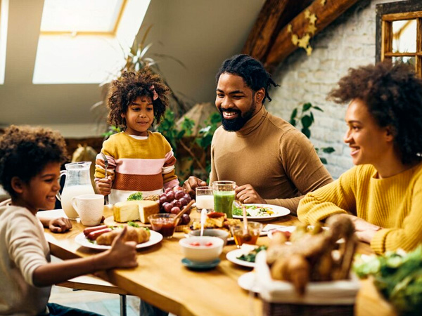 एक साथ खाना खाते समय आप पॉजिटिव रिलेशनशिप बना सकते हैं, इसके अलावा इससे आप हेल्दी इटिंग हैबिट डवलप कर सकते है। क्यूंकि जब आप दूसरों के साथ खाना खाते हैं तो आप धीरे-धीरे खाते हैं। और खाने को धीरे-धीरे पचा-पचा कर खाने से आप खुद को अधिक एनर्जेटिक महसूस कर सकते हैं। एक रिसर्च में ये बात सामने आई है कि ग्रुप में खाना शेयर करते समय एडल्ट हेल्दी फूड लेना पसंद करते है। यानि जब हम दोस्तों और परिवार के साथ डाइनिंग टेबल पर इकट्ठा होते हैं, तो हम बर्गर, चिप्स और सोडा के बजाय हेल्दी सलाद, ग्रिल्ड प्रोटीन और फ्रूटस अधिक पसंद करते है। इसलिए जब आप किसी बड़े ग्रुप के लिए खाना बना रहे हों, तो यह सुनिश्चित करने का प्रयास करें कि मेन्यू हेल्दी ऑप्शंस से भरा हुआ है।