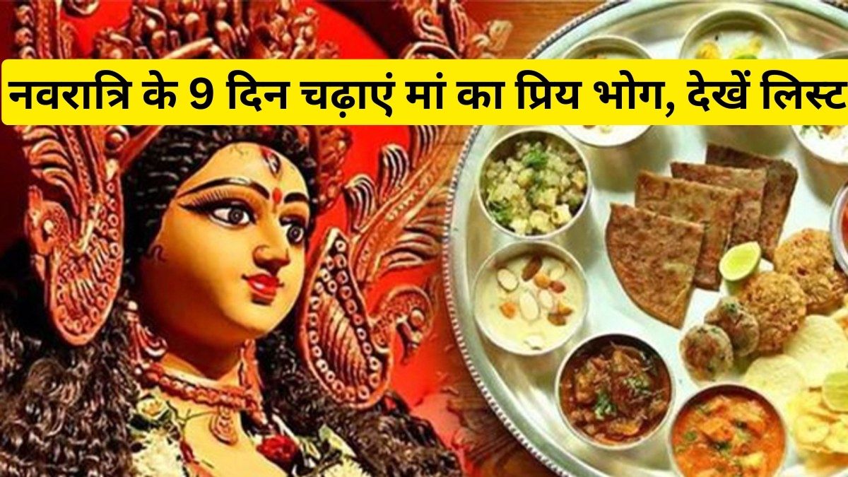 Navratri Bhog 9 Days Bhog: नैवेद्य और भोग के बिना देवी देवताओं की पूजा संपन्न नहीं होती है। पूजा पाठ के दौरान अपने आराध्य देवी देवता को नैवेद्य और भोग चढ़ाएं जाते हैं और फिर इनका प्रसाद भी बांटते हैं। नवरात्र जो 15 अक्टूबर 2023 दिन रविवार से शुरू हो रहा है उसमें हर दिन माता के अलग रूप की पूजा होती है।