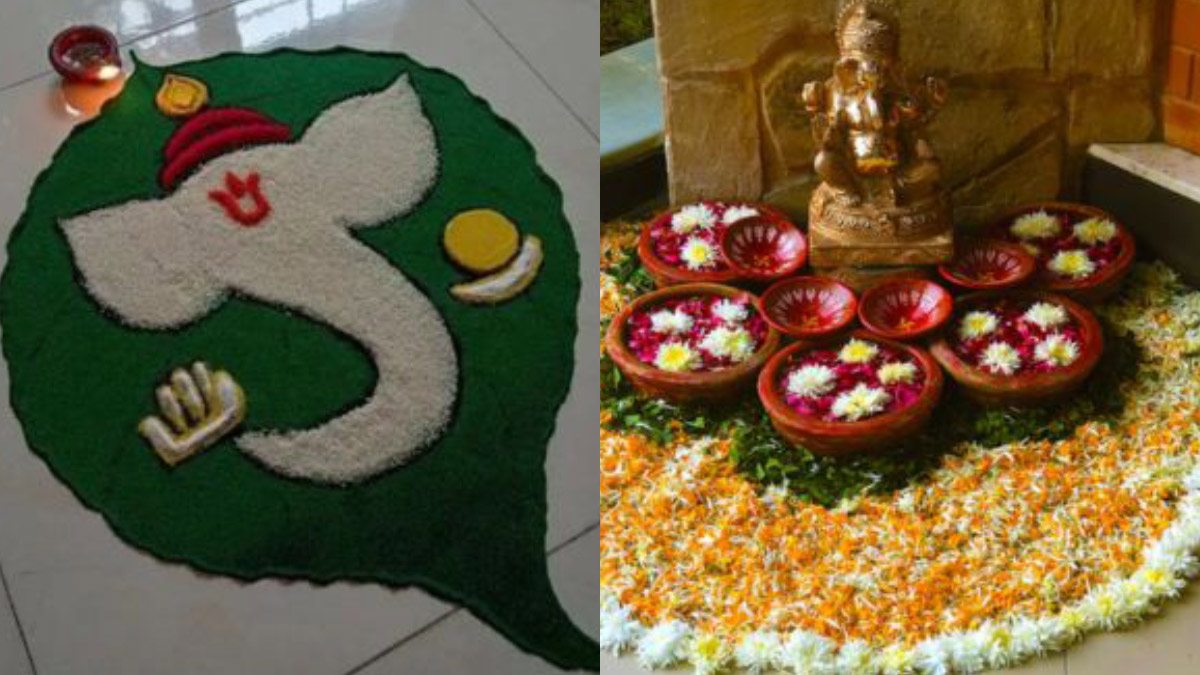 Eco Friendly Ganpati Rangoli Ideas : गणेश चतुर्थी पर अगर आप भी गणेश जी का स्वागत कर रहे हैं तो घर के दरवाजे पर रंगोली तो आप अवश्य ही बनाएंगे। हर साल हम गणेश जी के आगमन पर घर के दरवाजे पर कई तरह के कलरफुल रंगोली बनाकर इस दिन की खुशियों को सेलिब्रेट करते हैं।