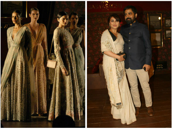 शो के दौरानर सब्यासाची मुखर्जी की अच्छी दोस्त रानी मुखर्जी भी वहां पर पहुंची। रानी ने बिंज कलर की साड़ी जिस पर सिल्वर का काम किया था, पहनी थी। इस सफेद साड़ी के साथ रानी ने ब्लैक कलर का ब्लाउज मैच किया था। यह साड़ी भी सब्यासाची के केलक्शन से ही थी।