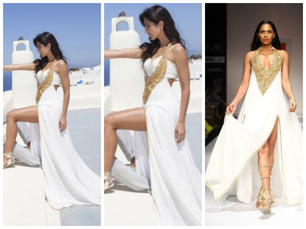 अभी लेटेस्ट प्रोमो में हमने कटरीना कैफ को वाइट स्वपनिल शिंडे गाउन में देखा। यह एक वाइट रंग का लंबा गाउन था, जिसके किनारे ब्लैक बार्डर दिया गया था। कटरीना ने कानों में पन्ने की लटकती हुई इयररिंग्स पहन रखी थी। कटरीना ने एक और अन्य स्वपनिल शिंडे गाउन पहना था, जिस पर काफी कीमती नग और पत्थर जडे़ हुए थे।