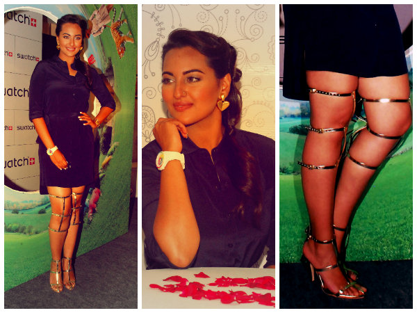 सोनाक्षी सिन्हा हमें इंप्रेस करने में कभी फेल नहीं होती। हाल ही में सोनाक्षी सिन्हा ने एक वॉच के कलेक्शन को लौंच किया। इस दौरान उन्होनें प्लेन ब्लैक शर्ट ड्रेस पहनी थी। सोनाक्षी ने अपने लुक को काफी स्टाइलिश रखा था। उन्होने लैक्मे फैशन वीक 2014 के आउहाउस से कुछ फ्रेश ज्वैलरीज ली थीं। यह ईवेंट स्वॉश वॉच फॉल 2014 कलेक्शन था।