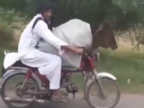 पाकिस्तानी युवक बाइक पर गाय को करवा रहा था सवारी, वीडियो हुआ वायरल