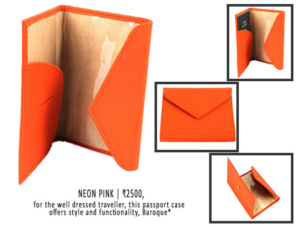 यह पासपोर्ट केस काफी उम्दा किसम का है जिसे कैरी करने के बाद आप स्टाइलिश दिखेंगे। इसकी कीमत है 2,500 रू। ज्यादा जानकारी के लिये क्लिक करें www.baroque.in