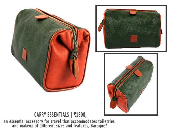 इस ग्रीट किट बैग में आप सभी जरुरत के समानों को रख सकती हैं। इसकी कीमत है 1,800 रू। ज्यादा जानकारी के लिये क्लिक करें www.baroque.in