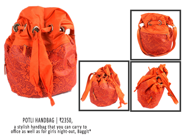 यह पोटली हैड बैग लेडीजों के लिये है। इसकी कीमत है 2,350 रू।