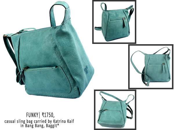यह फंकी ब्लू रंग का स्लिंग बैग कटरीना कैफ दृारा फिल्म बैंग बैंग में कैरी किया गया था। यह बैगिट का बेस्ट बैग है जिसकी कीमत है 1,750 रू।