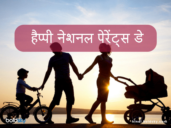 देश ही नहीं, दुनियाभर में माता और पिता का स्थान सर्वोच्च है। वैसे तो हर दिन मां और पिता के लिए समर्पित है मगर जिस तरह से हर साल मदर्स डे और फादर्स डे मनाया जाता है, ठीक उसी तर्ज पर नेशनल पेरेंट्स डे का भी आयोजन किया जाता है। यह हर साल जुलाई महीने के आखिरी सप्ताह में मनाया जाता है। जुलाई माह का चौथा रविवार, भारत और अमेरिका में नेशनल पेरेंट्स डे के रूप में सेलिब्रेट किया जाता है। इस दिन को मनाने के पीछे का मुख्य उद्देश्य माता और पिता के प्रति आभार व्यक्त करना है। इस दिन बच्चे अपने तरीके से अभिभावकों के लिए कुछ खास करने का प्रयास करते हैं। आप भी नेशनल पेरेंट्स डे के मौके पर कुछ खास प्लान करें और साथ ही उन्हें ये संदेश भेजकर अपना प्यार जरूर जताएं।