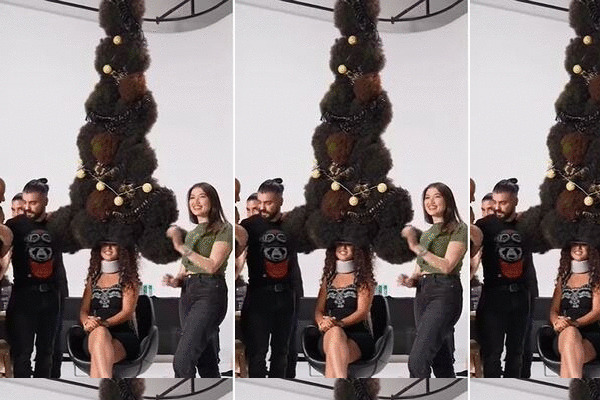 सबसे मुख्य बात तो ये है कि महिला की चोटी को क्रिसमस ट्री का आकार दिया गया है। वीडियो में साफ दिखाई दे रहा हा कि महिला को 3 डंडे वाला हेलमेट पहनाया गया था, जिस पर चोटी के लिए विग के विस्तार किया जा रहा है।