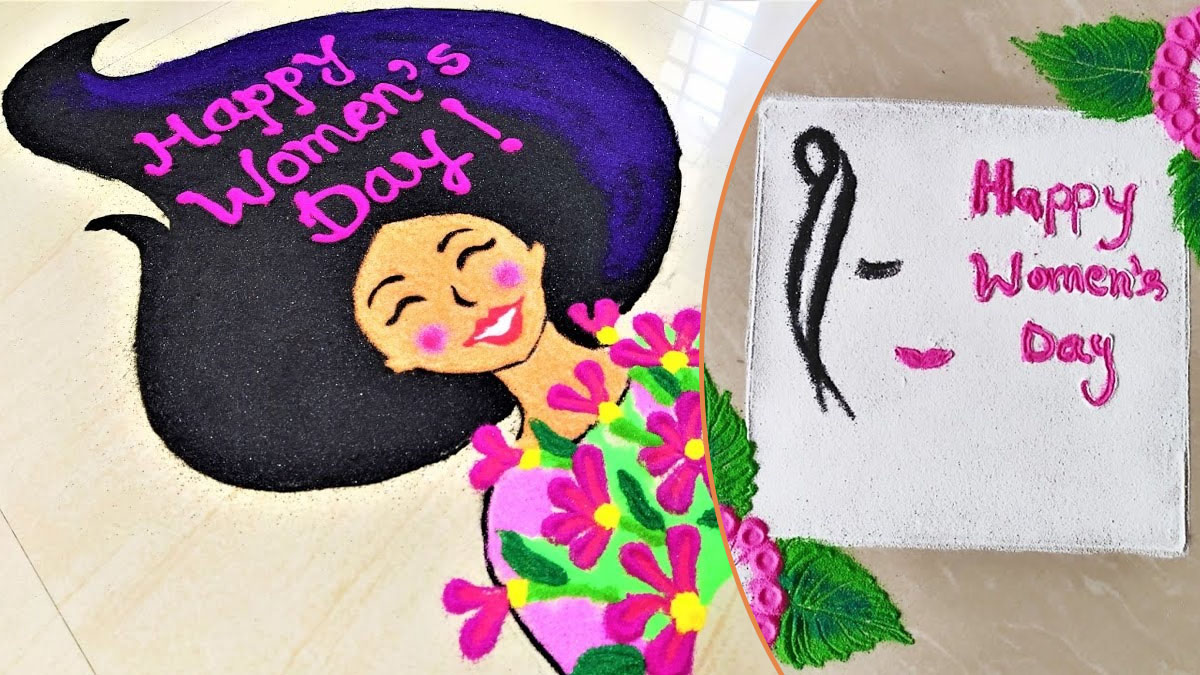 महिला दिवस के मौके पर आप ये आसान सी रंगोली डिजाइन बना सकता है। ये डिजाइन बहुत ही खूबसूरत और यूनिक हैं।