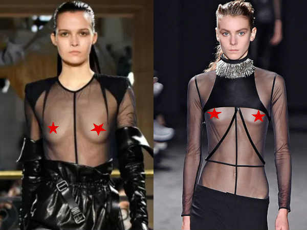 वहीं इस जालीदार टॉप में बिना ब्रा के ये मॉडल्स सबकुछ फ्लॉन्ट करती नजर आईं।