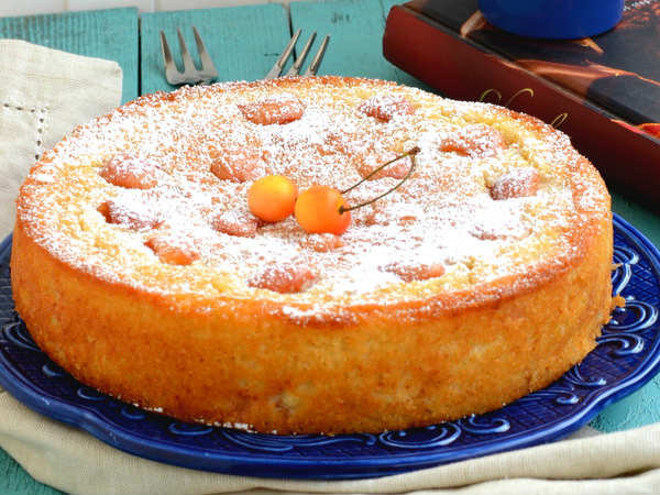 - अब आधी चैरीज को केक के ऊपर रखें और दुबारा से केक को 35 मिनट तक बेक करें।