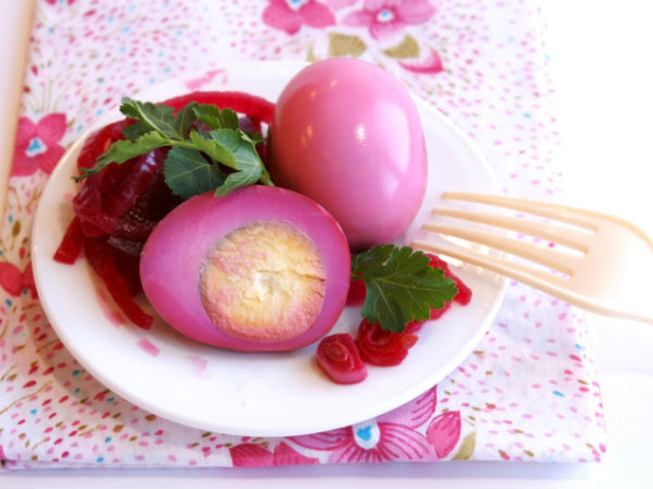 4 उबले अंडे, 1 कप शकरकंद का रस, 4 कप साइडर वेनिगर, 3 कटे हुए प्याज, नमक, ½ कप चीनी, 1 अलहसुन।