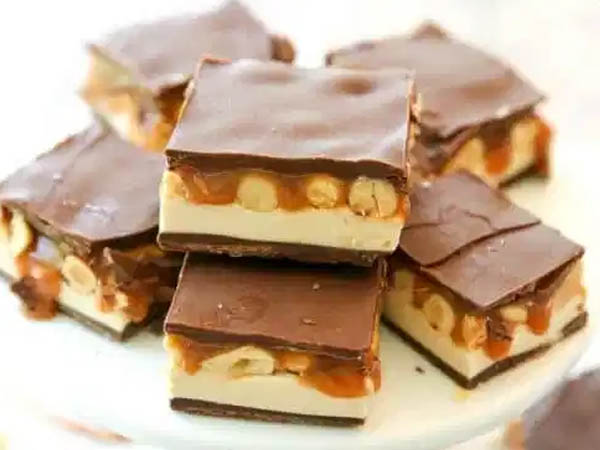 स्टेप 5 आपके होममेड स्निकर बार्स तैयार हैं