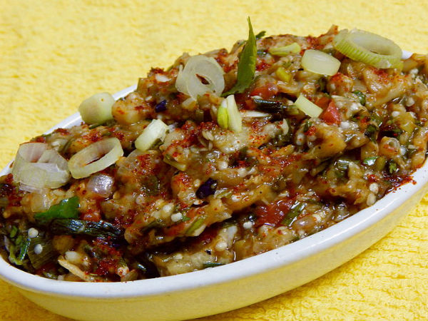 यह बैंगन की सब्जी सरसों के तेल में पकी हुई है और साथ ही इसमें कश्मीरी लाल मिर्च भी डली हुई है, जिससे इसका स्वाद तीखा और जाकेदार बन जाता है। इसको खट्टा करने के लिये इसमें अमचूर पावडर और नींबू निचोड़ा जाता है। अब आइये जानते हैं इसे बनाने की विधि-