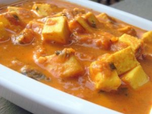 विधि: मेथी को उबाल कर सिल पर या मिक्सर ग्राइडर में महीन पीस लीजिये। पनीर के टुकड़े काट कर उसे तेल या रिफाइंड में फ्राई करें। तले हुए पनीर के टुकड़ों को पानी में भिगो दें ताकि उनमें से तेल निकल जाये। पतीली में पके हुए तेल में हींग, जीरा, लौंग और अदरक का छौंक लगाकर उसमें पिसी मेथी डाल दें। इस मिक्सचर को अच्छी तरह भूनिये।